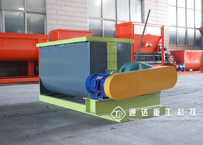 臥式攪拌機(jī)利用一根加裝螺旋葉的軸旋轉(zhuǎn),在輸送干灰等粉狀物料的同時(shí)加水?dāng)嚢,均勻加濕干灰粉狀物料,達(dá)到使加濕物料不冒干灰又不會(huì)滲出水滴的目的。